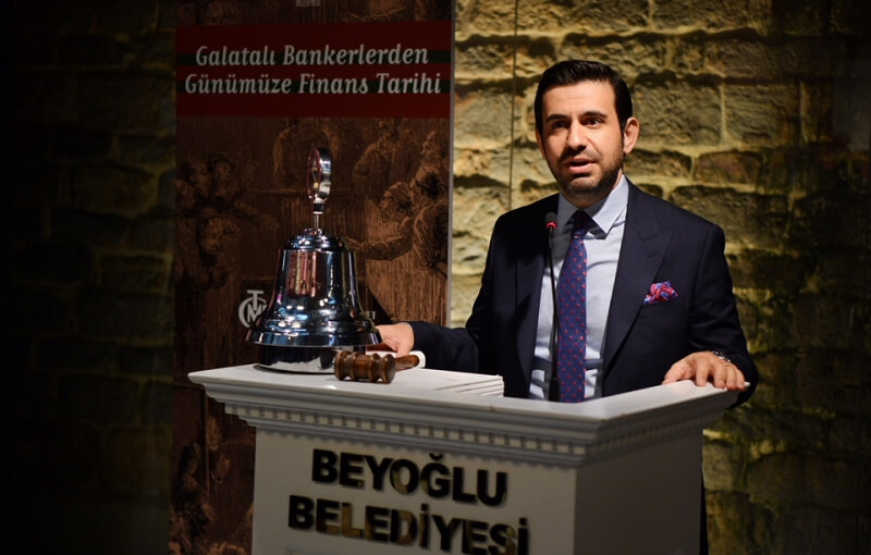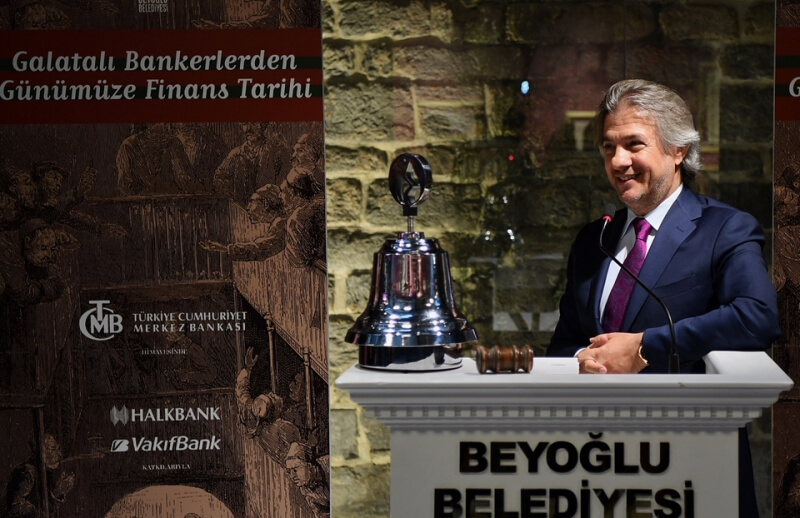 Serginin açılışını gerçekleştiren Beyoğlu Belediye Başkanı Ahmet Misbah Demircan, “Beyoğlu’nu kültürün, sanatın, tarihin, mimarinin, estetiğin, turizmin merkezi olarak hep adlandırıyoruz. Ama ıskalıyoruz, aslında Beyoğlu sanayileşme ve ticari tarihimizin, bankacılık, sigorta hizmetlerinin de merkezi. Bu yönünü biliyoruz ama öne çıkarma konusunda belki zayıftık. Bu sergi Beyoğlu’nun bir başka yönünü de ön plana çıkarıyor. Sanayi devrimi ile birlikte hayatımıza ticareti geliştirmek üzere banknotlar, hisse senetleri girdi. Bunlar da Galata bankerleri üzerinden günümüze geldi. Bu modern sanayileşme hamlesinin başladığı süreçte Türkiye topraklarında bankacılık nereden başladı, ilk örnek neydi, hangi evrimleri geçirdi ve bu güne nasıl geldi? Bunları anlatması açısından kıymetli bir sergi oldu.” dedi.